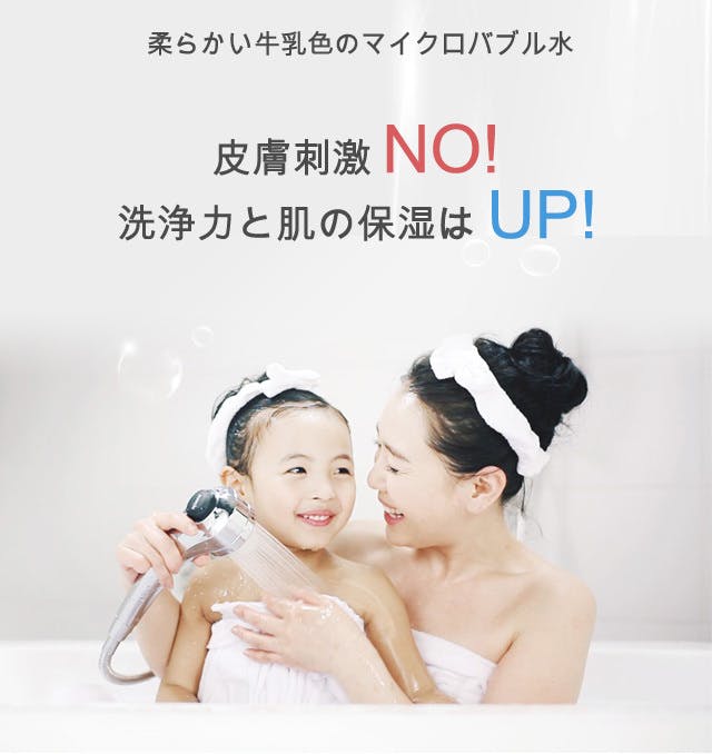 "よりなめらかな肌","よりしっとりした肌" 365日家族の皮膚の健康をM2マイクロバブルシャワーヘッドで守る。