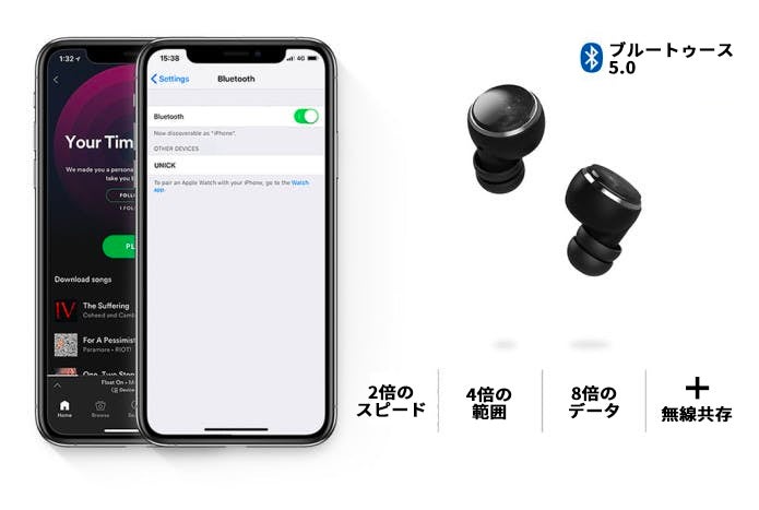 ブルートゥース5.0はユビキタス無線技術の最新版で、10メートルの範囲内での接続を強化し、超安定的な無線接続を維持します。強化された接続により、少ない電力消費でスムーズに音楽が送信できるため、充電時間の短縮と再生時間の延長が可能になります。