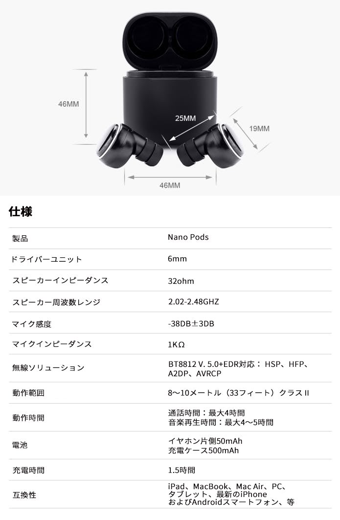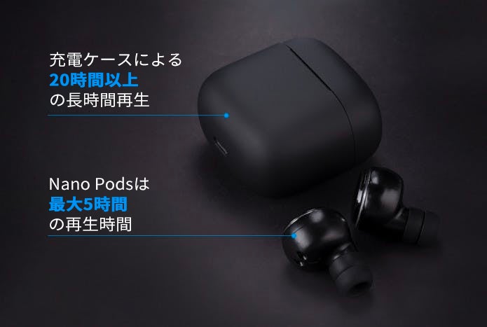 Nano Podsは完全ワイヤレスステレオ「TWS」です。しかも、高度な機能と卓越した音質を備えています。これまでで最も低価格の、最も適当なワイヤレス・イヤホン・ソリューションです。