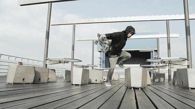 通常のスケートボードでは飛び越える必要のある階段も、ステアローバーならスムーズに滑ることが出来ます。