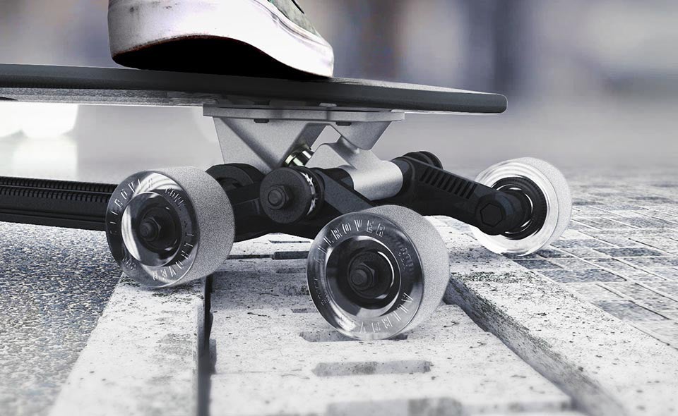 私たちが開発した8輪スケートボード「Stair-Rover」(ステアローバー)は日本の皆さんがどんな地形でも自由自在に移動できる新時代のスケートボードです。