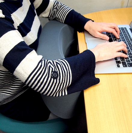 腕を支えたり、腰に置いて背筋を伸ばす事で猫背の前かがみの姿勢を防止します。
