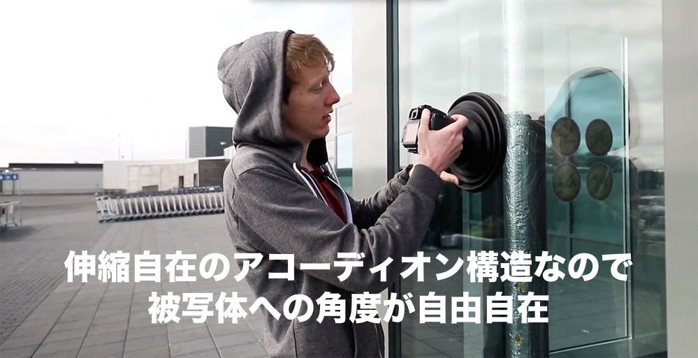 三脚を使ってガラスに近づけないという場合にも"ULH"を伸縮させて撮影可能です。