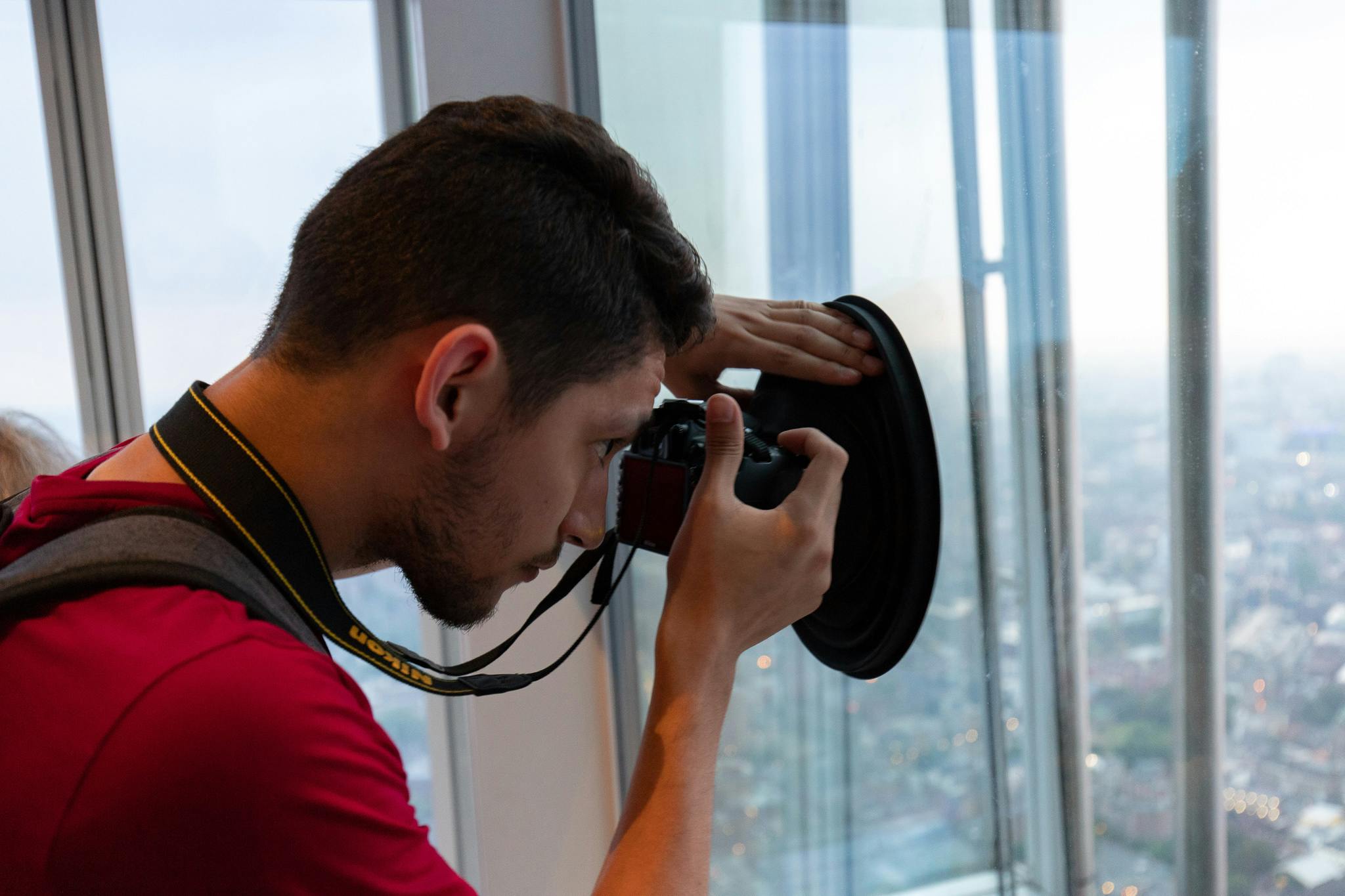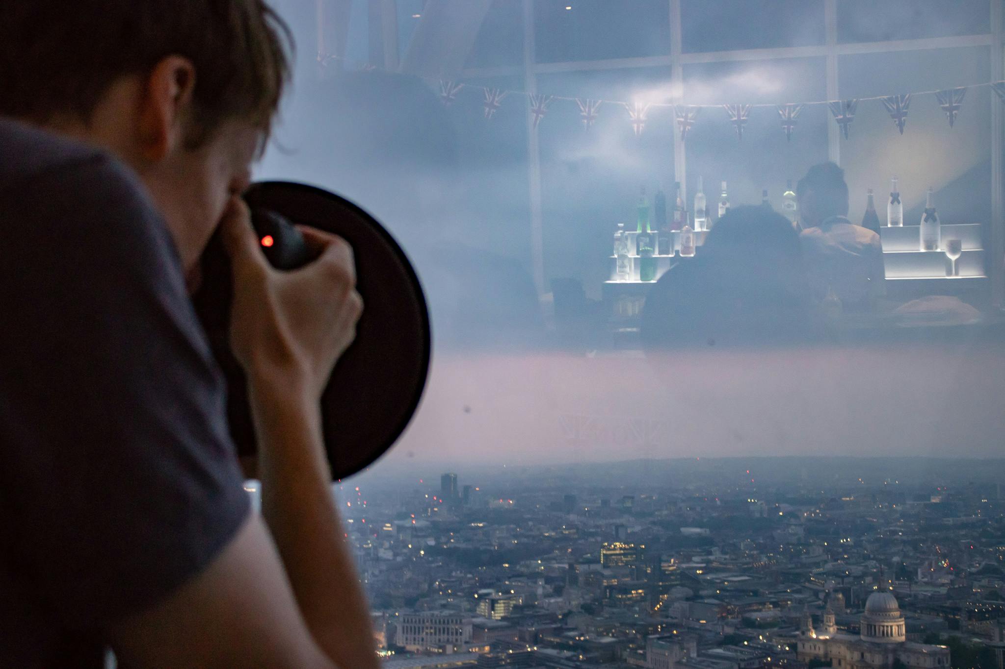「高層ビルから夜景を撮ったら、自分の姿が映り込んでしまった」
