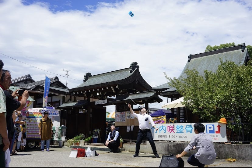 今回会場に選んだ場所である裏山。その昔この場所で映画や陶器市など、今で言うところのイベントが行われていた歴史を知りました。ほぼ同時期に、高槻ジャズストリートに参加して感銘を受け、またご近所さんの「昔はようココに皆集まってアレコレしたもんや」を頻繁に聞くようになり、コレはココで何かしらやらなければと思い、イヤもっと言えば「ココで何かしろ!」と、言われた気がしてこの「SAKAI Green Fes」を企画しました。「戦中戦後、屋外映画会・陶器市などが行われていたこの場所で『100年の歴史が令和元年に蘇る!』