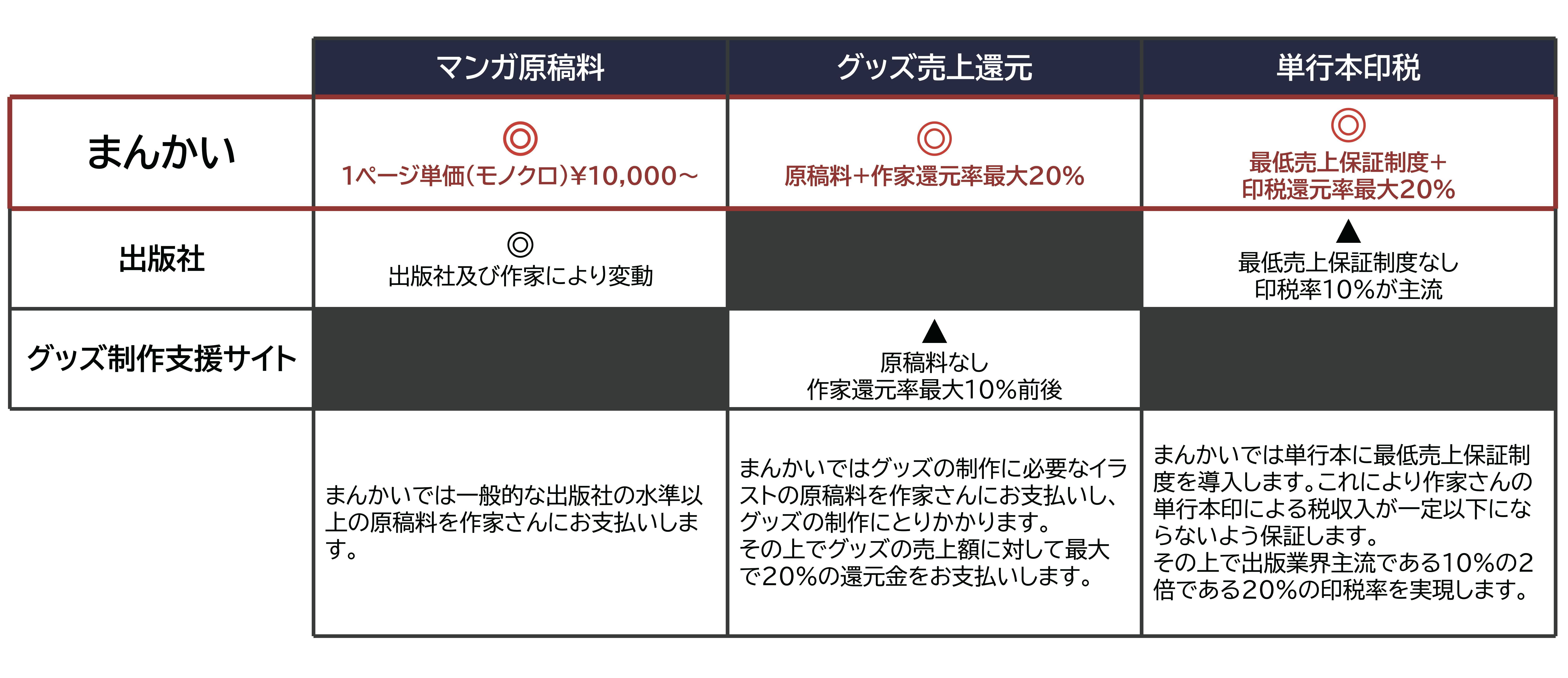 まんかいと出版業界/他サービスとの比較