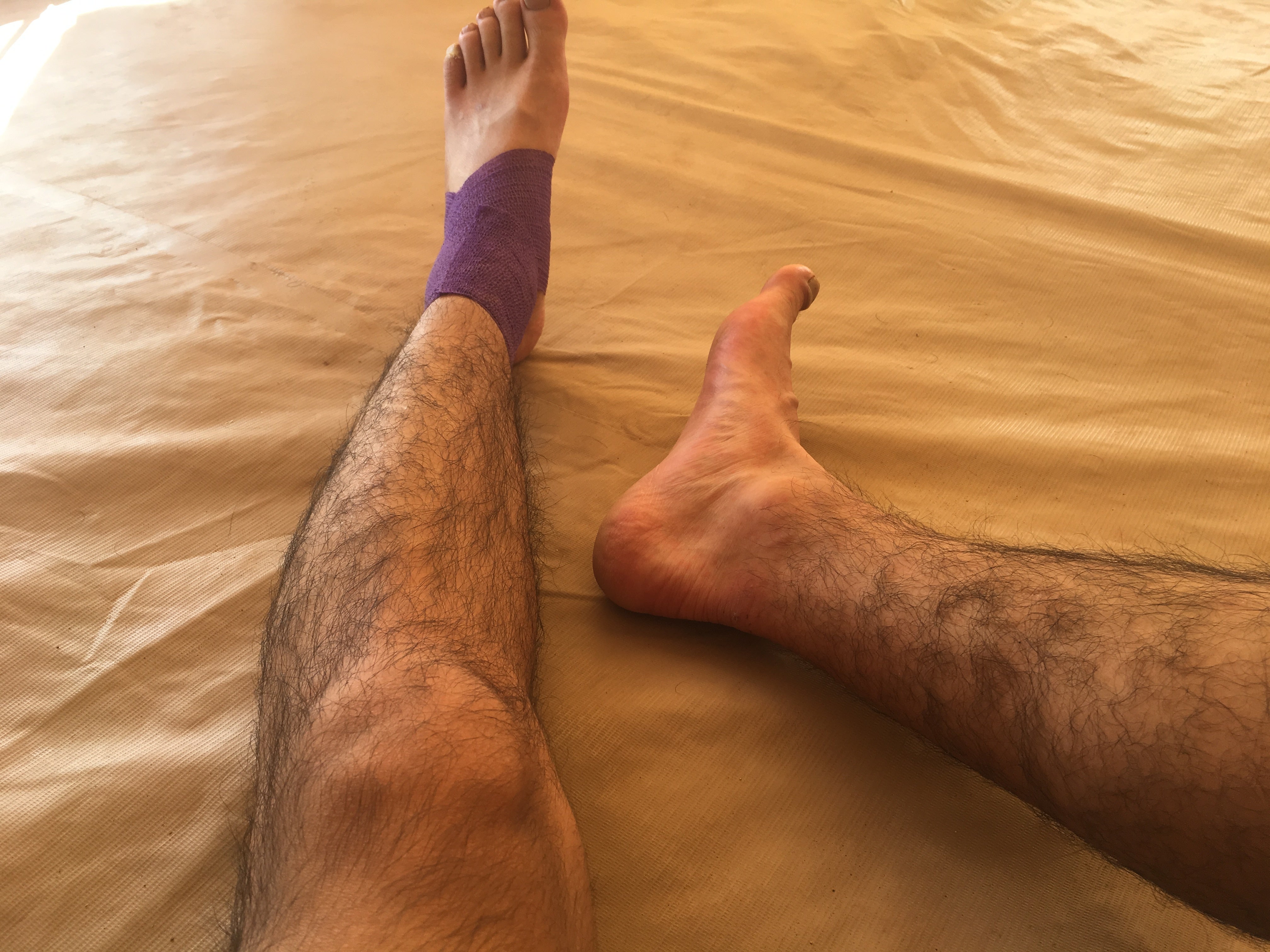 足がひどい内出血を起こし、医療チームのテントに行き、治療を受けました。