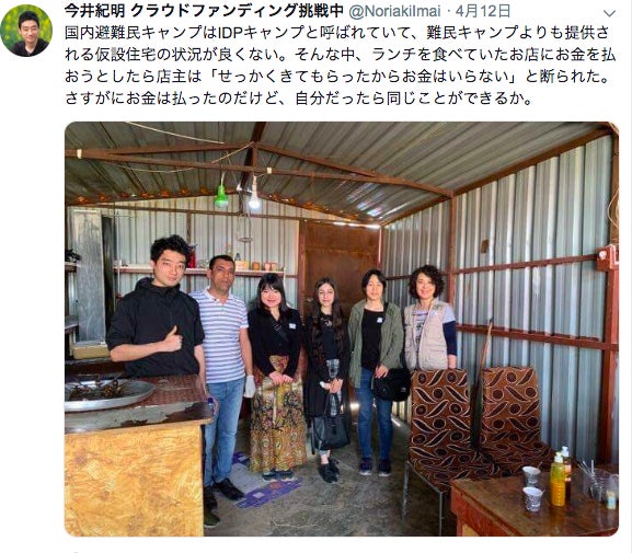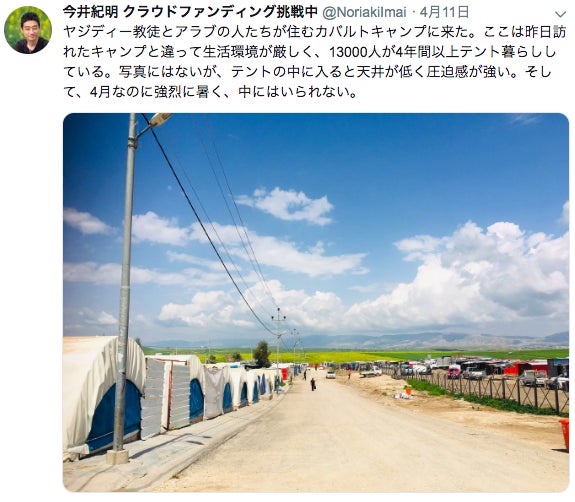 今井は4月にイラクを訪れて、シリアの難民キャンプや国内避難民キャンプを訪れています。