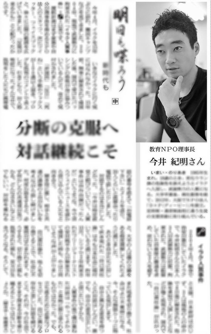 認定NPO法人D×P(ディーピー)代表の今井紀明が15年ぶりにイラクを訪れたこと、イラク人質事件の解放後にバッシングを受けて対人恐怖症になったことや、批判をした人たちと対話を続けたことについて掲載していただいております。