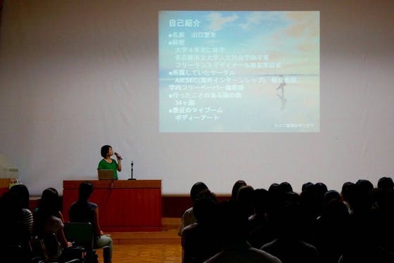 今年のイベント名は「Firstep~まだ見ぬ世界へ飛び出す勇気を~」で、8月11日に開催しました。世界一周の経験のある2名の講演者をお呼びして、参加者に世界へ飛び出す勇気を持ってもらえるような講演やクイズ大会を行いました。