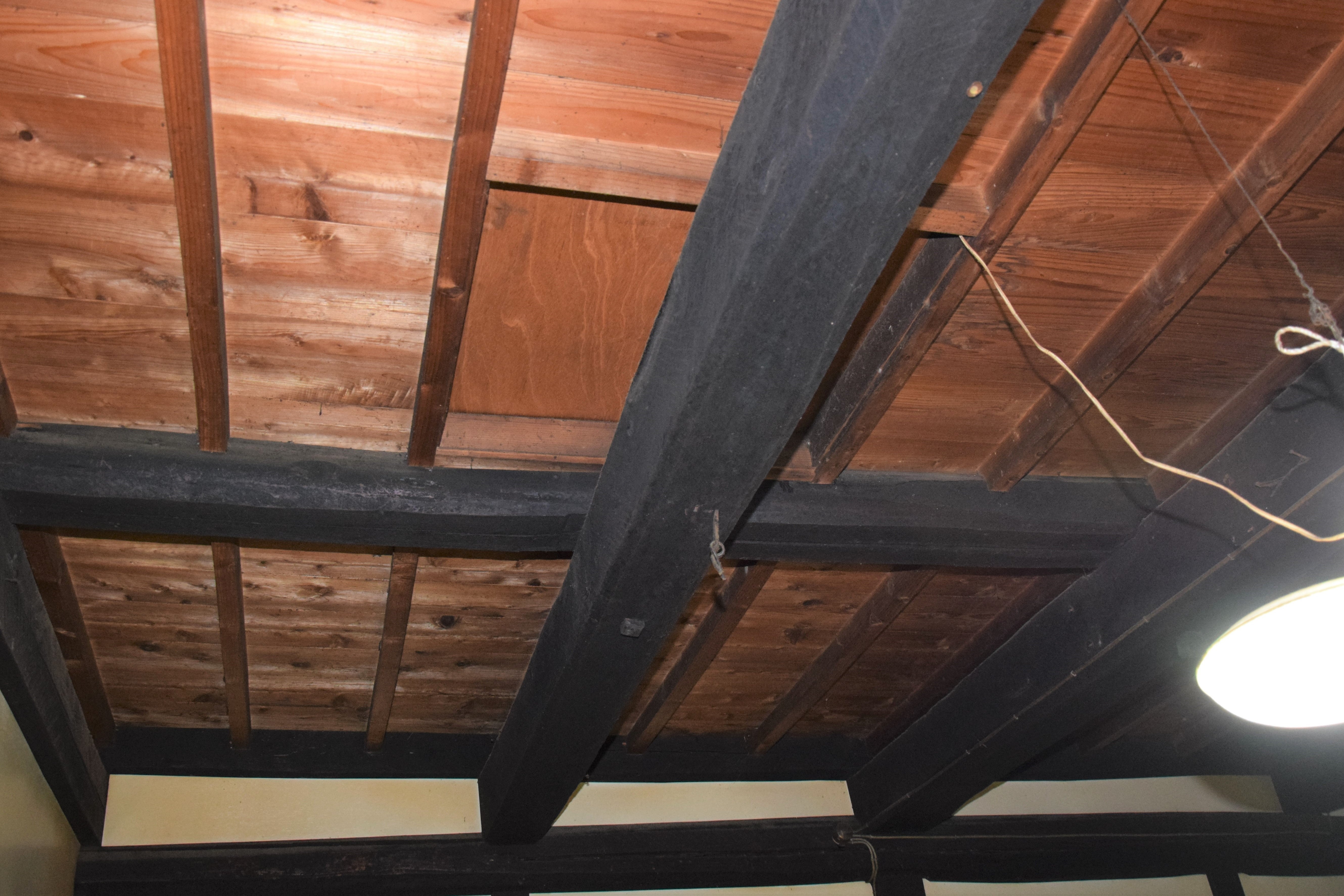 ④屋根裏部屋の整理(昔上がったことのある屋根裏部屋。天井裏の梁が見えて秘密基地感がたまらなく良い。是非皆さんに見て頂きたい)