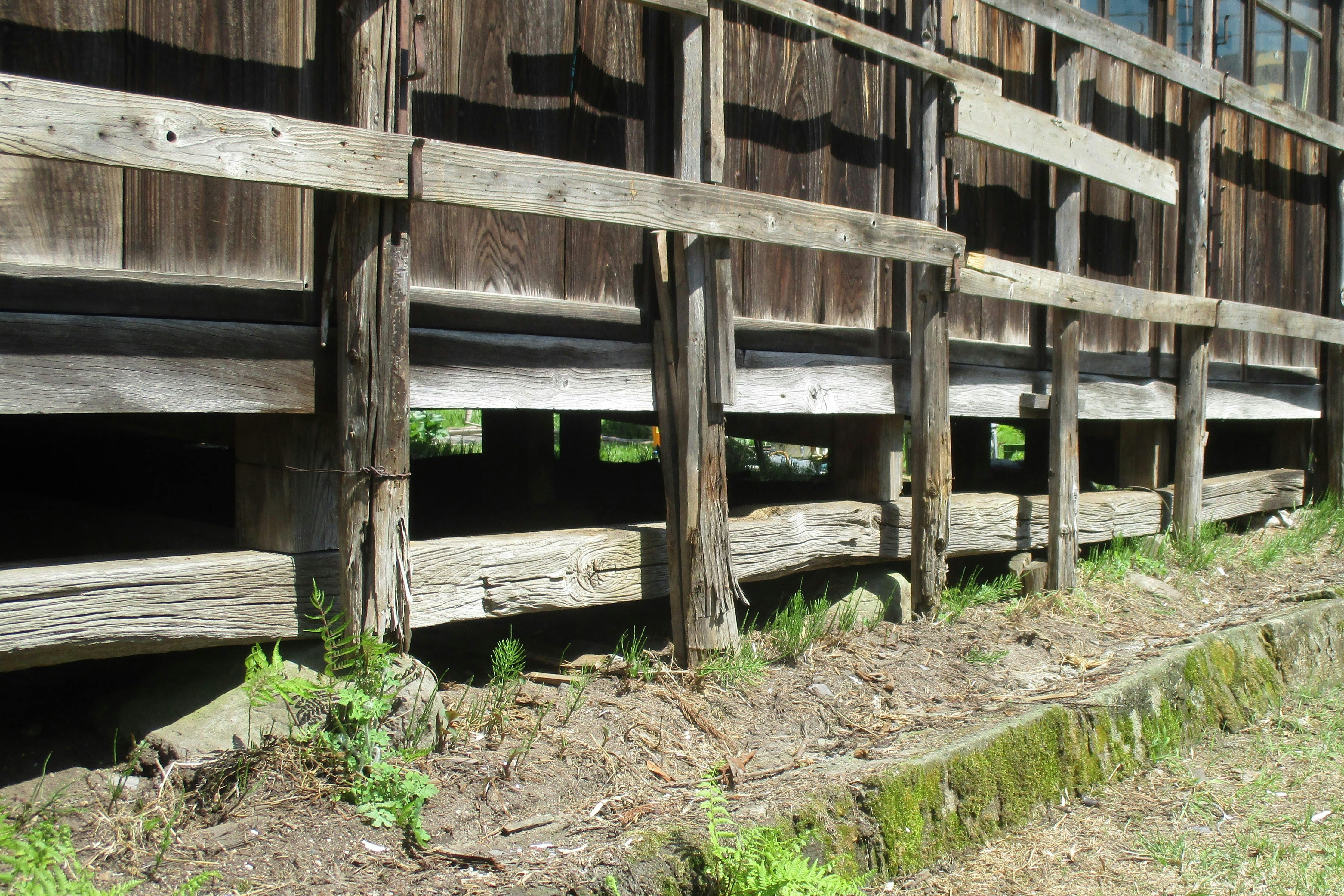 昔ながらの玉石基礎工法による土台作りで造られているために、縁側・廊下の土台が沈み、崩れそうなったり、柱が傾いているので、危険の無いように修復します。見積額30万円です。