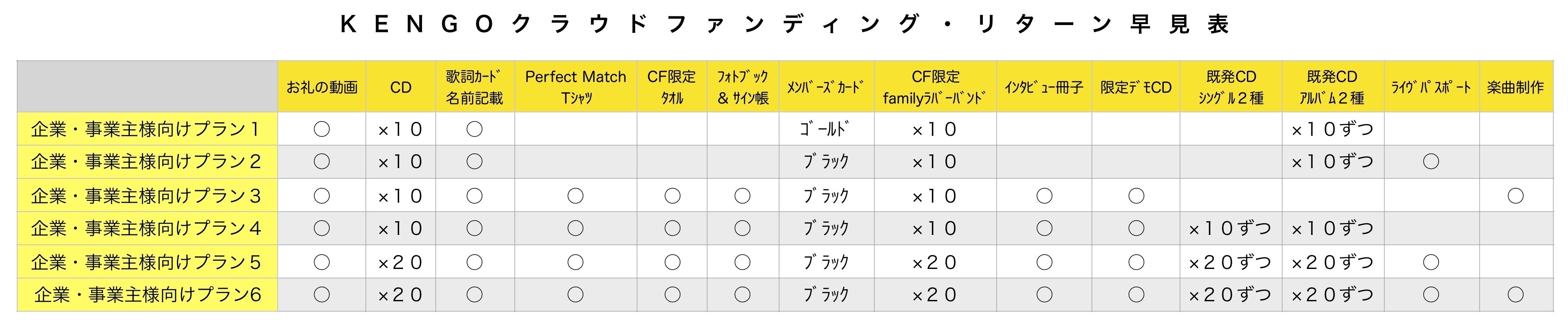 プラン別リターン早見表