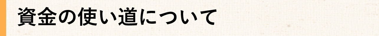 資金は、下記の4点に皆様からの支援を大事に使わせて頂きます。