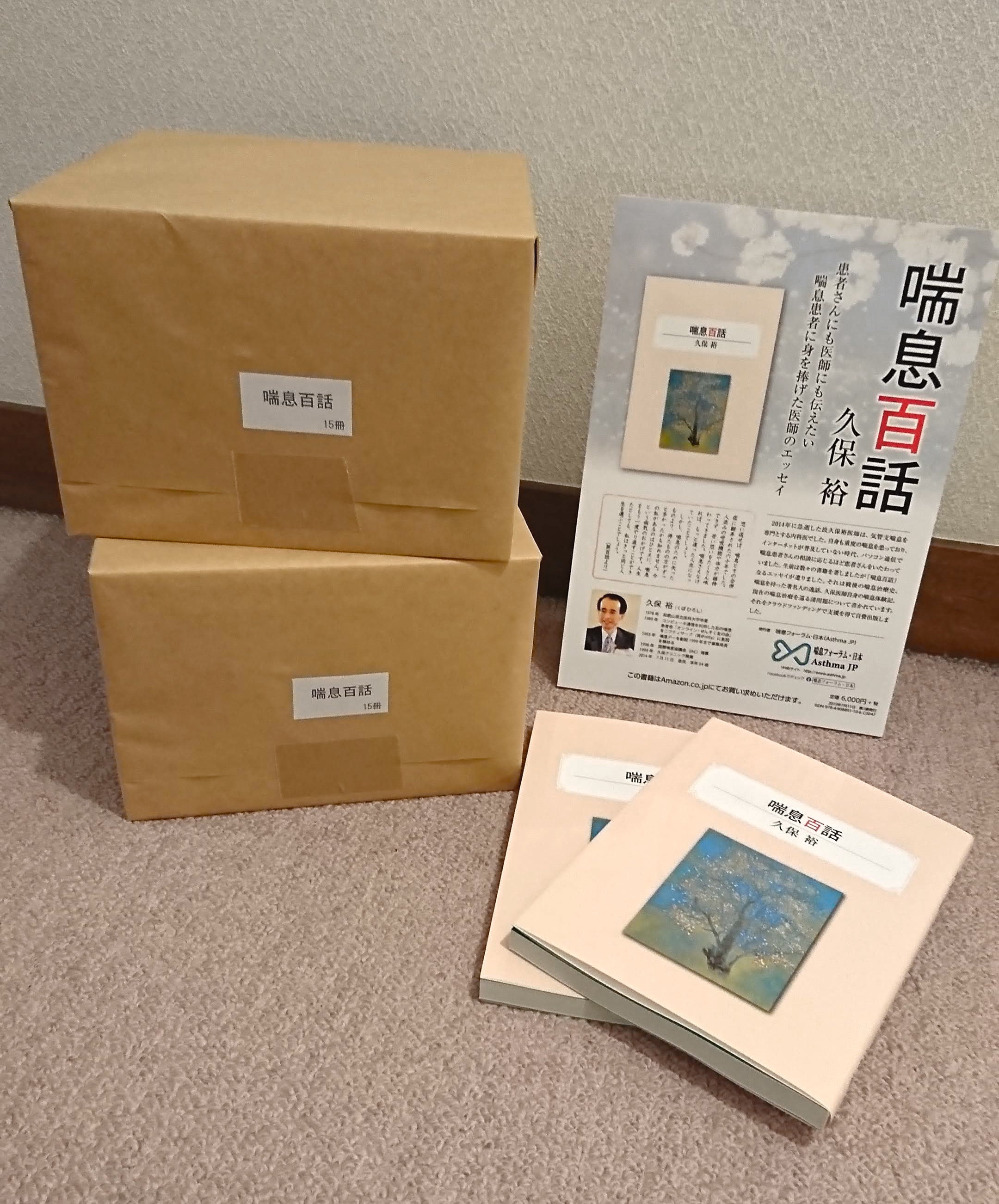 本日(7/22)、図書印刷同朋舎の方が、完成した『喘息百話』を持ってきて下さいました!500冊刷り上がっているそうですが、ひとまず本日は60冊受け取りました。感慨無量です。。 今年1月に久保先生の遺稿集を出そうと決めて、なんとかなりました。私の本ではありませんが、本を自費出版するのは初めての事です。そして初めてのクラウドファンディングも、なんとかやってみました。