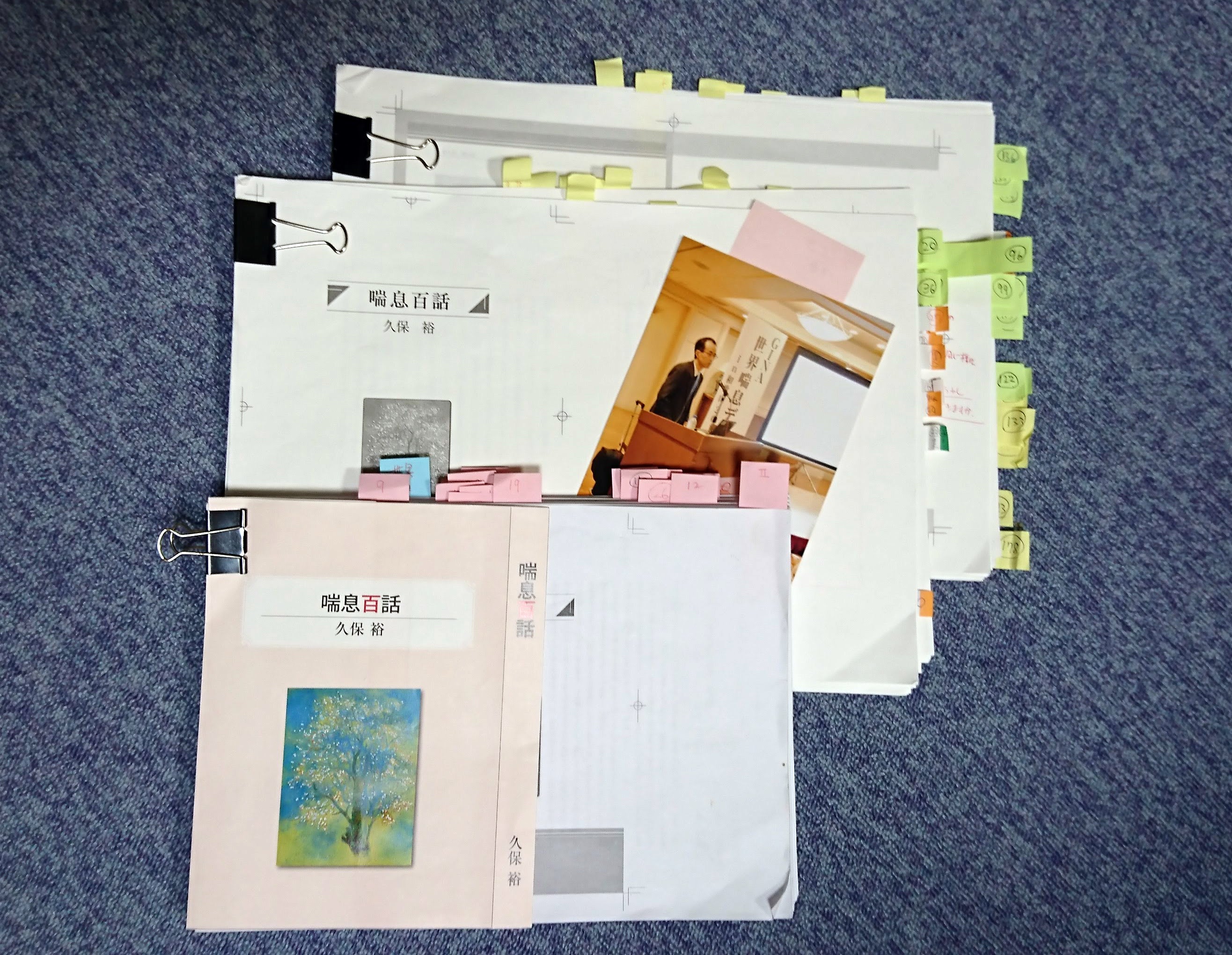 本日、「喘息百話」の再校(2回目の校正原稿)が届きました。目次も序文も、お話に合わせた写真なども入り、そして本の表のデザインなども3通り。本のデザインはどれがいいでしょう(^^ゞ。「喘息百話」の完成が見えてきました。文章の長さの問題で、どうしてもできてしまう余白をどうするか。もう少し話題にちなんだ写真を入れようか。よい本になるようにこれからもブラッシュアップ していきます。