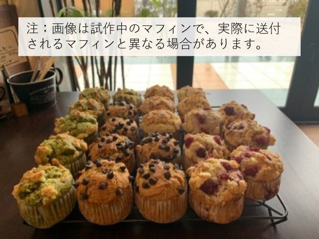 (試作品のマフィンは2019年7月の中~下旬、完成品を2019年8月の中~下旬にお送りする予定です。アンケートを添えさせていただきますので、是非ご回答いただき、完成品の美味しさ向上にご協力をお願いいたします。)