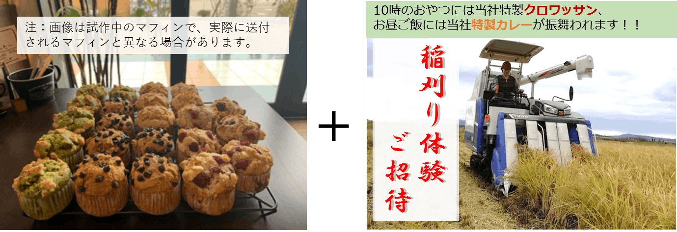 【試作品マフィン(5個)+完成品マフィンセット(3個) + 稲刈り体験ご招待】