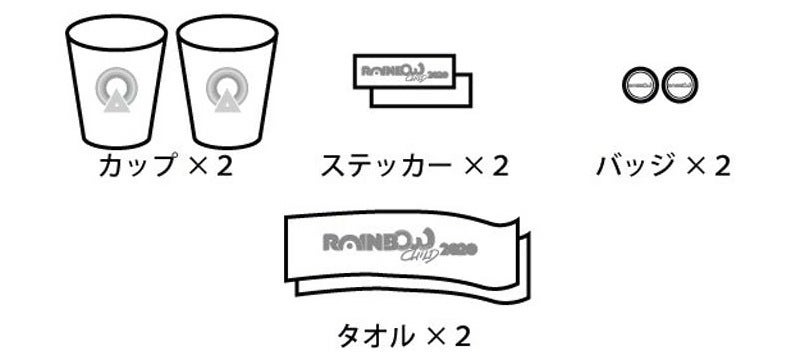 今回作成するリユースカップや、RAINBOWオリジナルグッズ、RAINBOW CAMPチケット等をご用意しています!