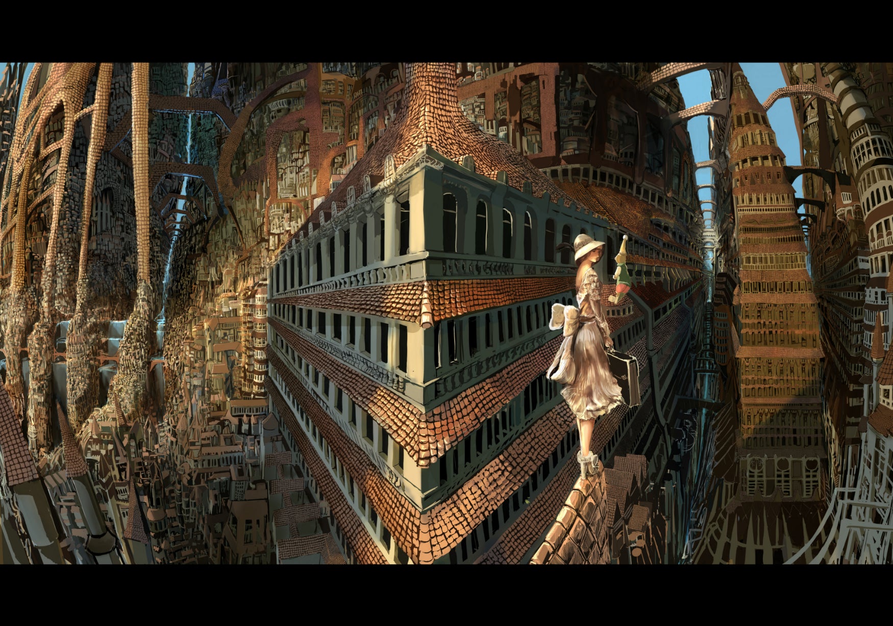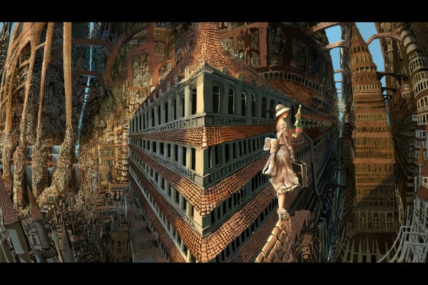 アニメチックな人物にペン画のようなアナログな背景、