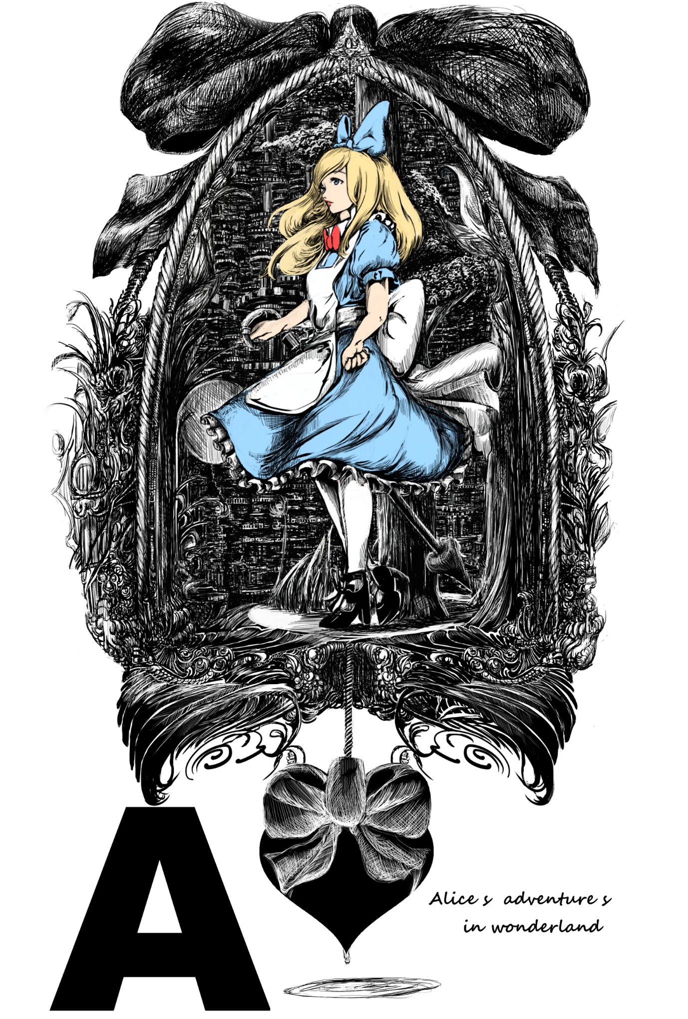 『不思議な国のアリス』時計をイメージしながら描きました。