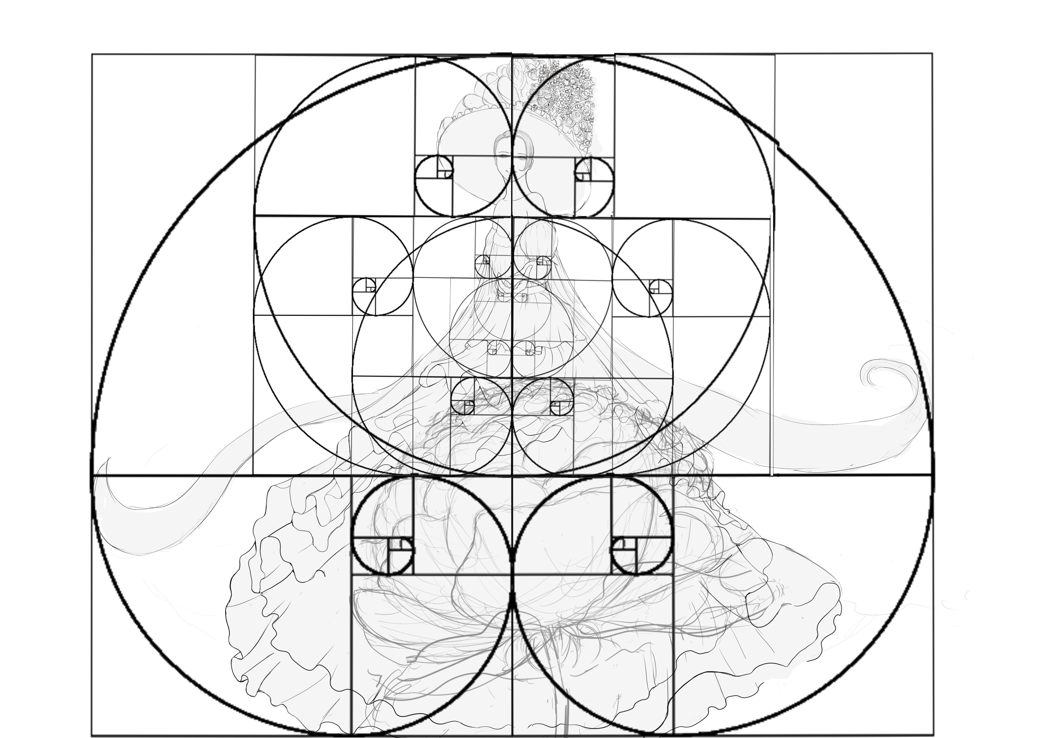 相対する6連続黄金比のイラストへの試み。