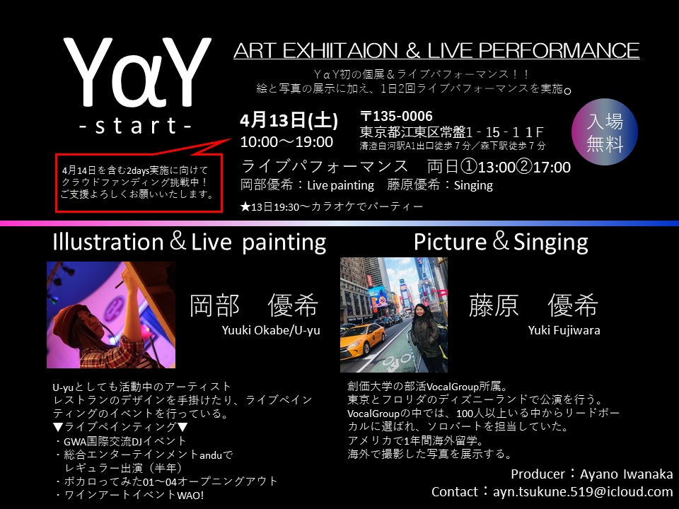 この度、その第一弾として、チーム初の個展&パフォーマンス「YAY‐start」を開催します。
