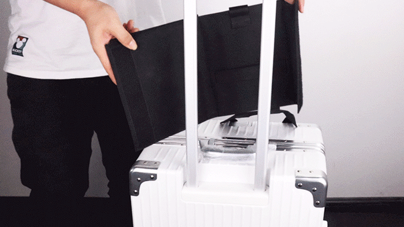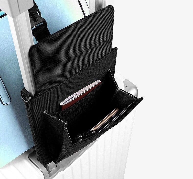 スーツケースの上に、手荷物、バッグを固定できる便利な収納袋付きベルト!