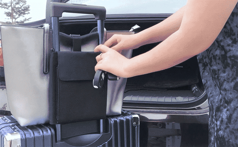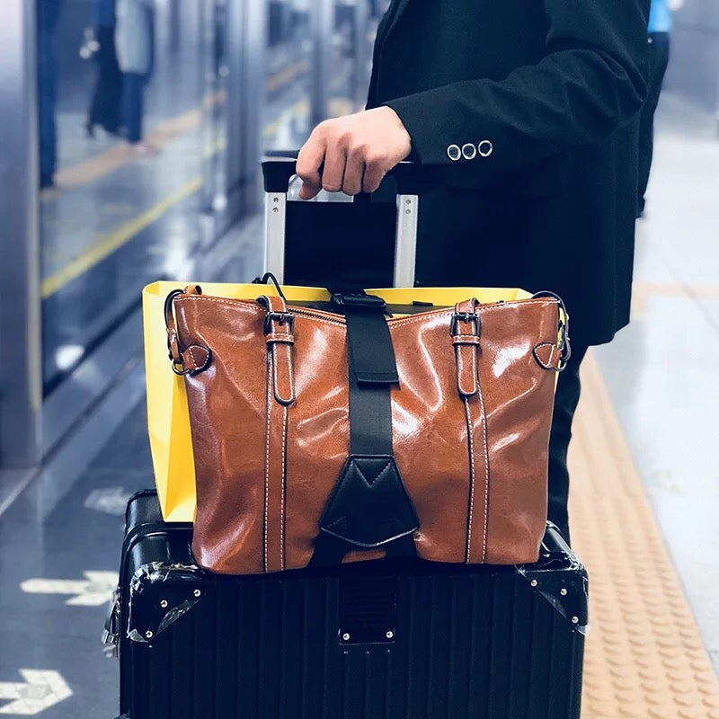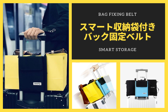 様々なアイテムをスマートに持ち運べるだけでなく、ベルトが付いておりスーツケースとバッグ、お土産(紙袋も可能)をずれ落ちる事なくがっちり固定することができるアイテムです。