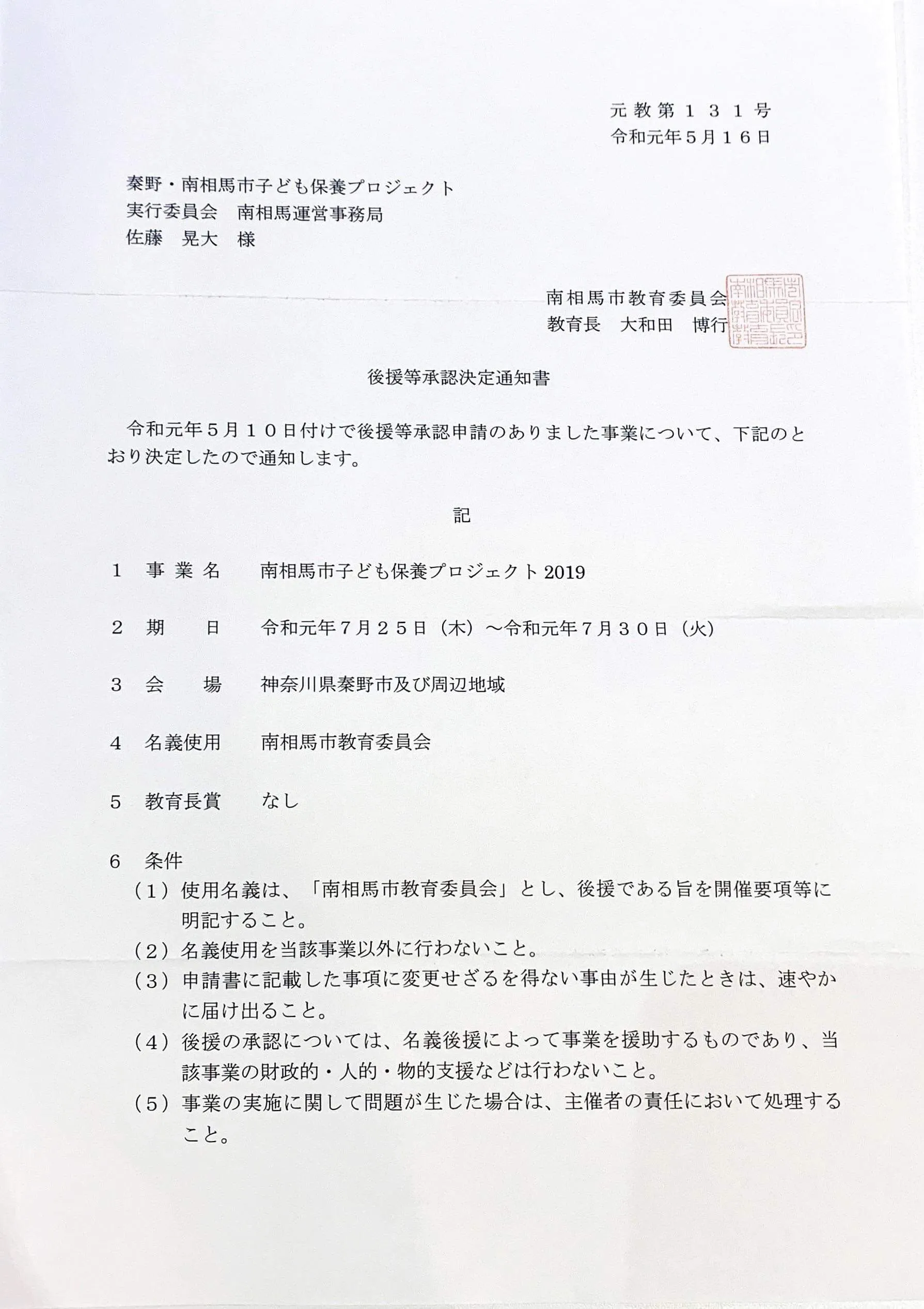 お世話になっております。本日、南相馬市教育委員会様よりご連絡があり本年も「後援」が決定いたしました。