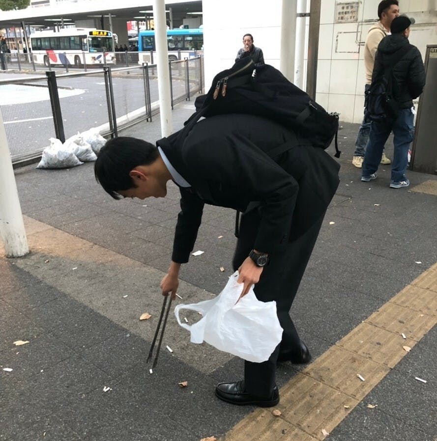 川崎=治安が悪いといったイメージを払拭するために、私たちにもできることはなんだろうか。と考えた結果、タバコのポイ捨てを減らそうと目標を立てました。川崎駅東口の喫煙所周辺に多くのポイ捨てが見られるということで手始めに東口の喫煙所のポイ捨てを減らそうと乗り出しました。