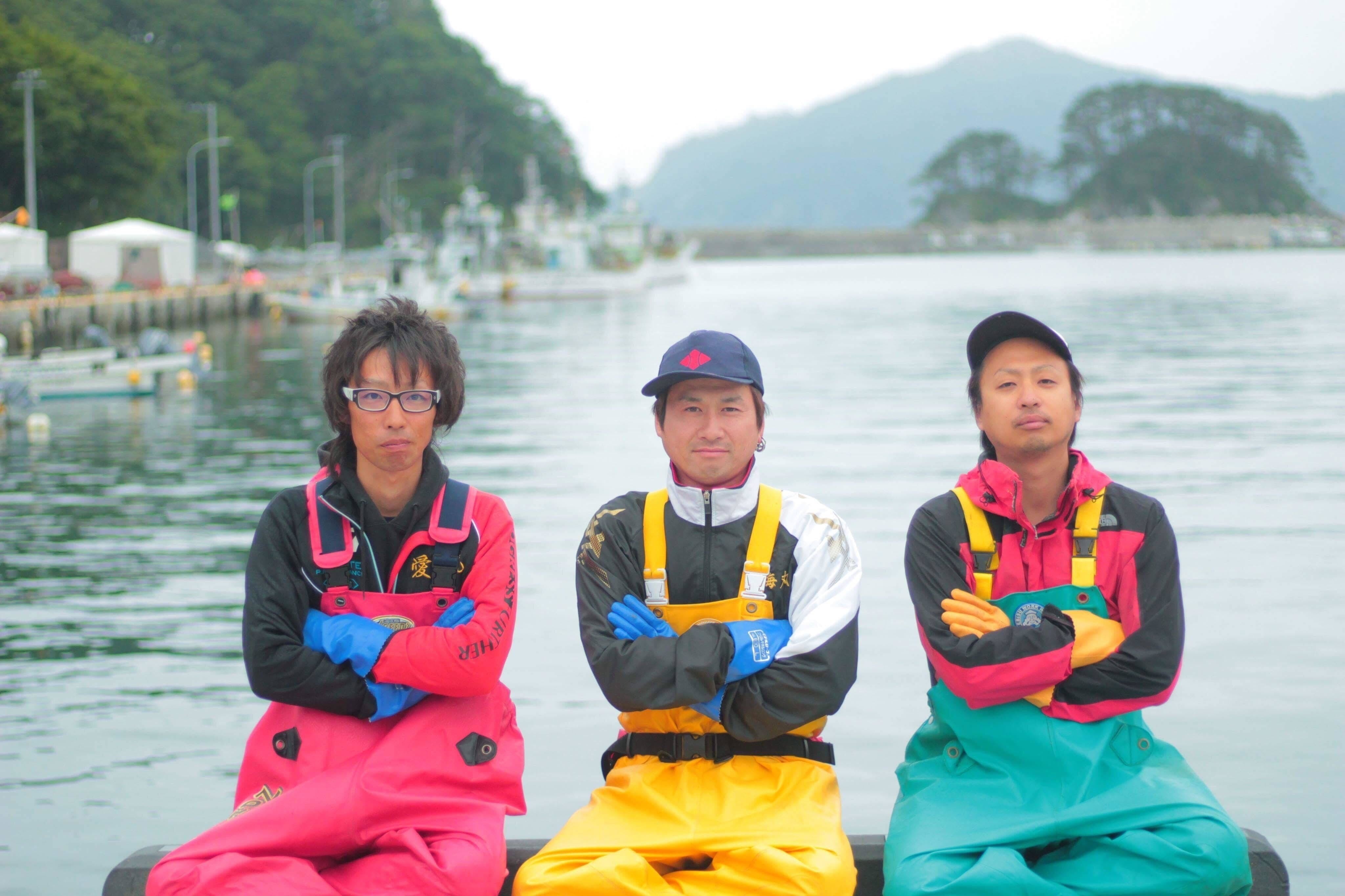 (左から、漁師仲間の川畑和稔、山﨑太樹(本人)、中野圭)
