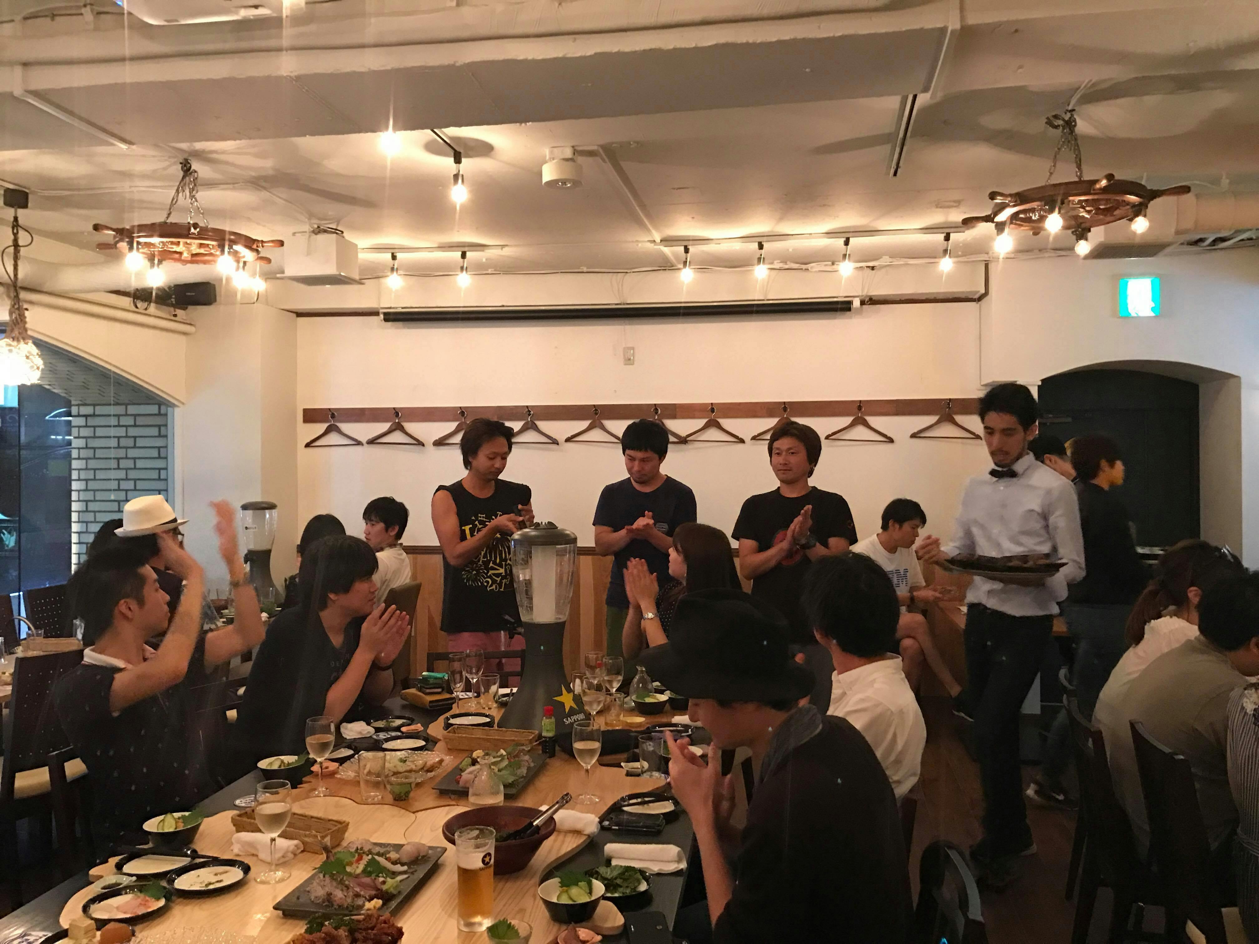 (東京での交流イベントにおける崎浜若手漁師たちの崎浜ヤンキーブランド紹介プレゼンの様子)