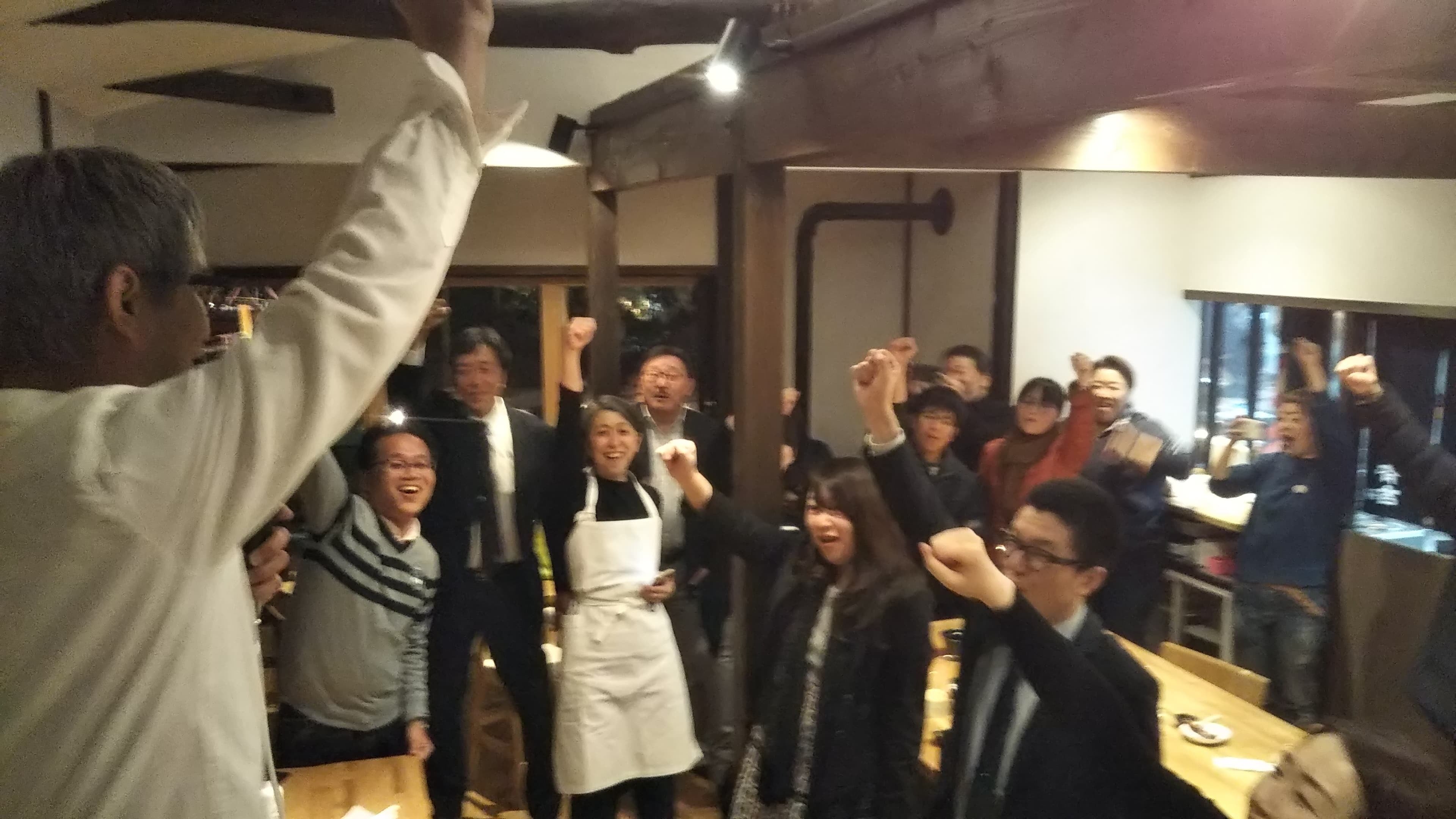 最後は、みしおね横丁で"いけてるバー"「PRISM」を開店するゆうしさんの掛け声で、お客さんもスタッフもみんなでえいえいおー!