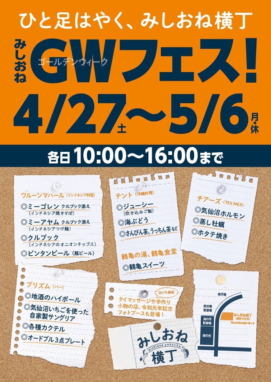 10日間まいにち開催!の「みしおね横丁ゴールデンウィークフェス」です*