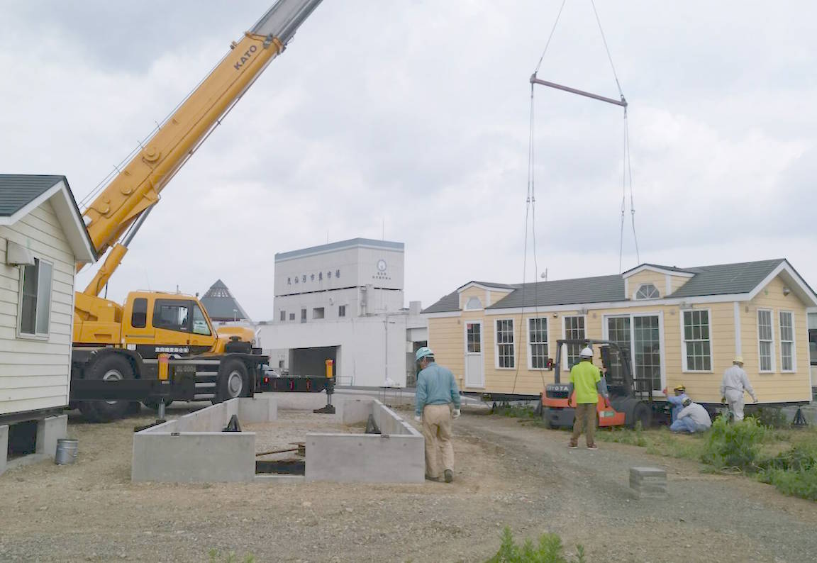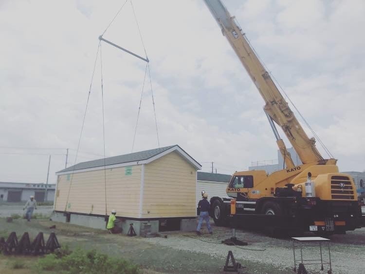 昨日、鶴亀の湯と鶴亀食堂はクレーンで吊り上げられ、所定の場所(基礎の上)へ設置されましたーー!