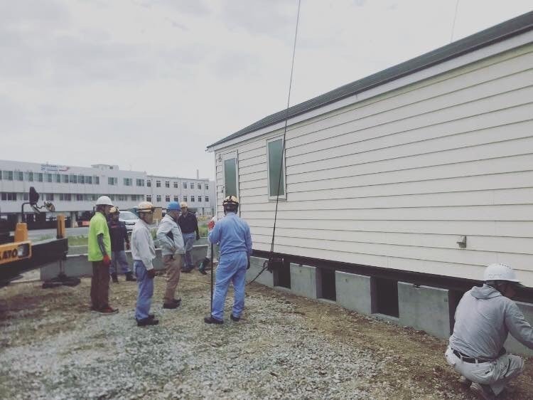 この大きくてとっても重そうなトレーラーハウスを吊り上げて1ミリもずらさずにピッタリと乗せる技術、本当に感動します。
