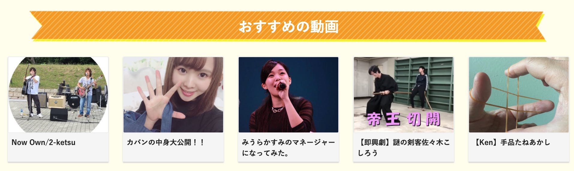 1) 支援者様の投稿した動画をサイトのおすすめの動画枠で2週間表示