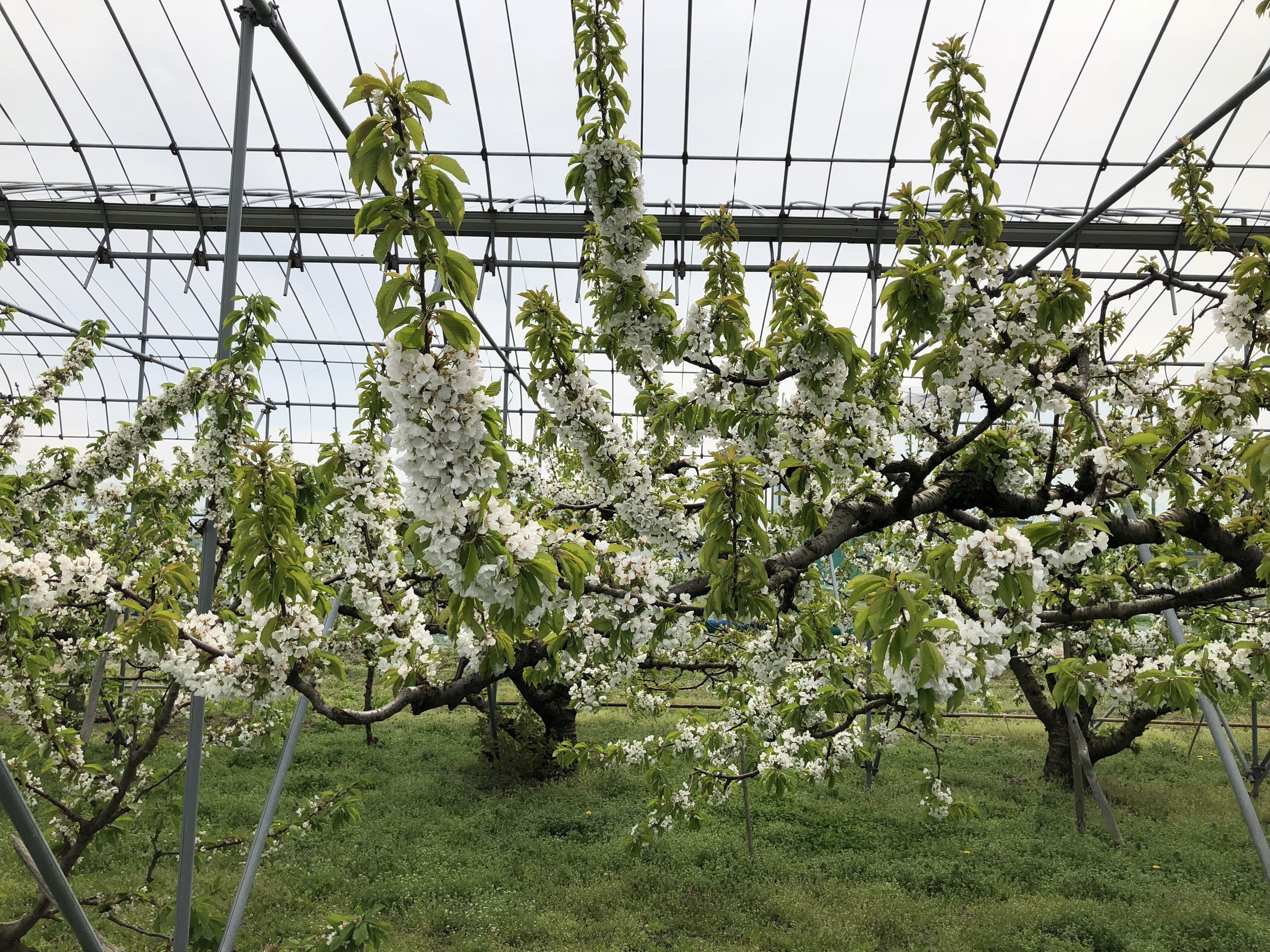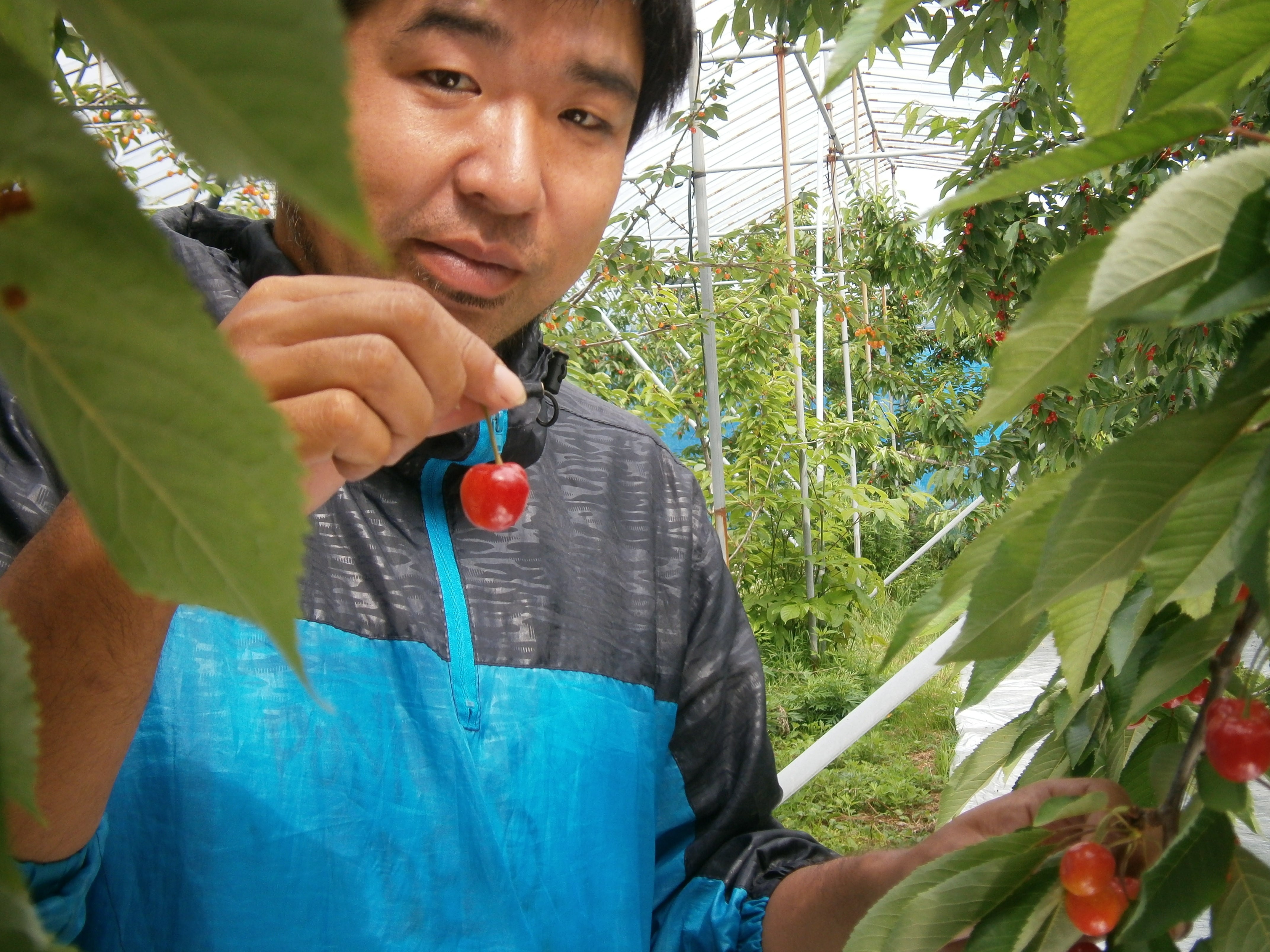 その後、雨よけのビニールシートを天井に張り、味と、赤みを仕上げていきます。これらの努力が6月には、赤くたわわなさくらんぼとして実ります。