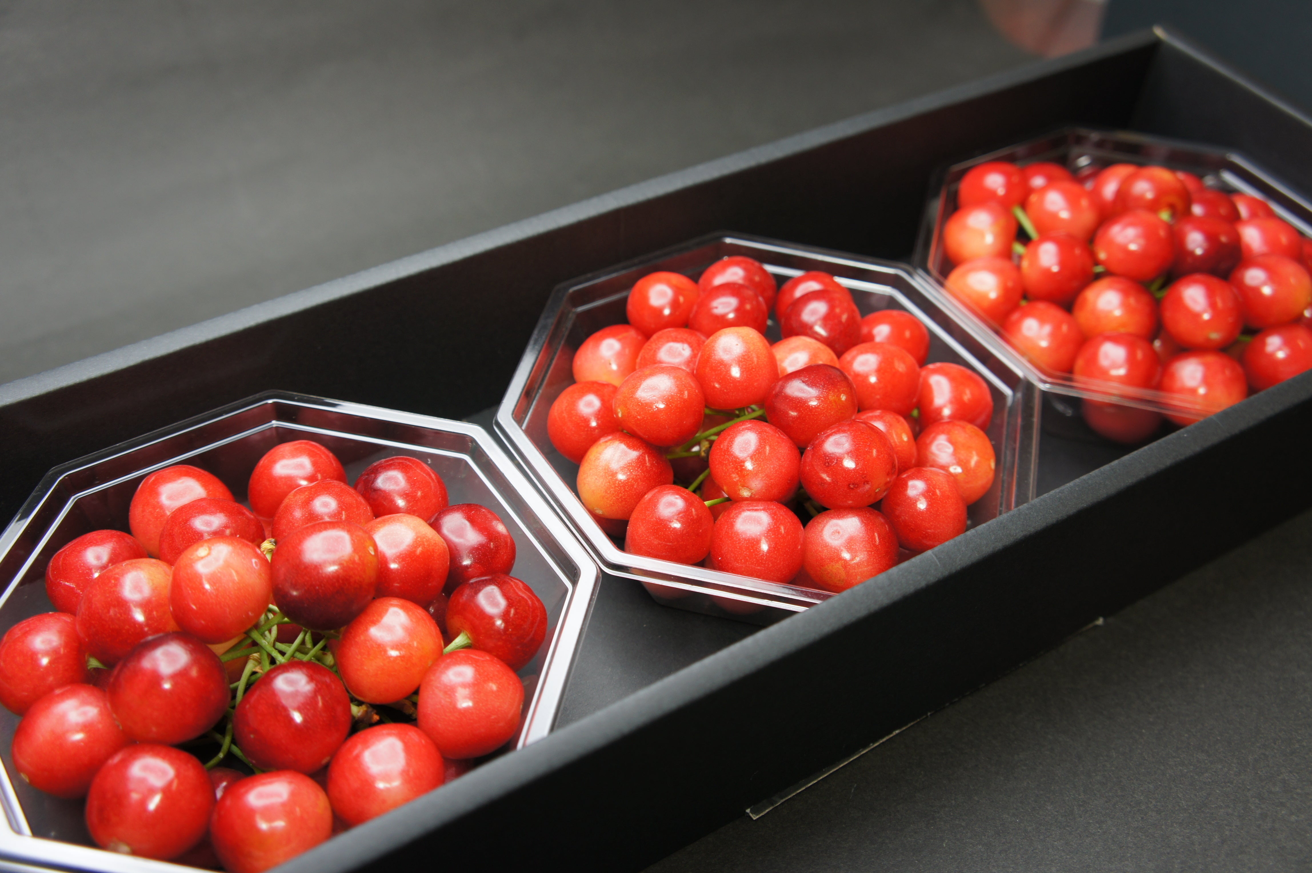 収穫されたさくらんぼは、ひとパックづつ撮影された画像データを基に、最終的な味の測定を行います。従来の糖度計での測定よりも、より多面的に味を測定することで、ただ甘いだけでバランスが取れていないものや、酸味の強いものを取り除き、自信をもってお届けできる商品を厳選します。