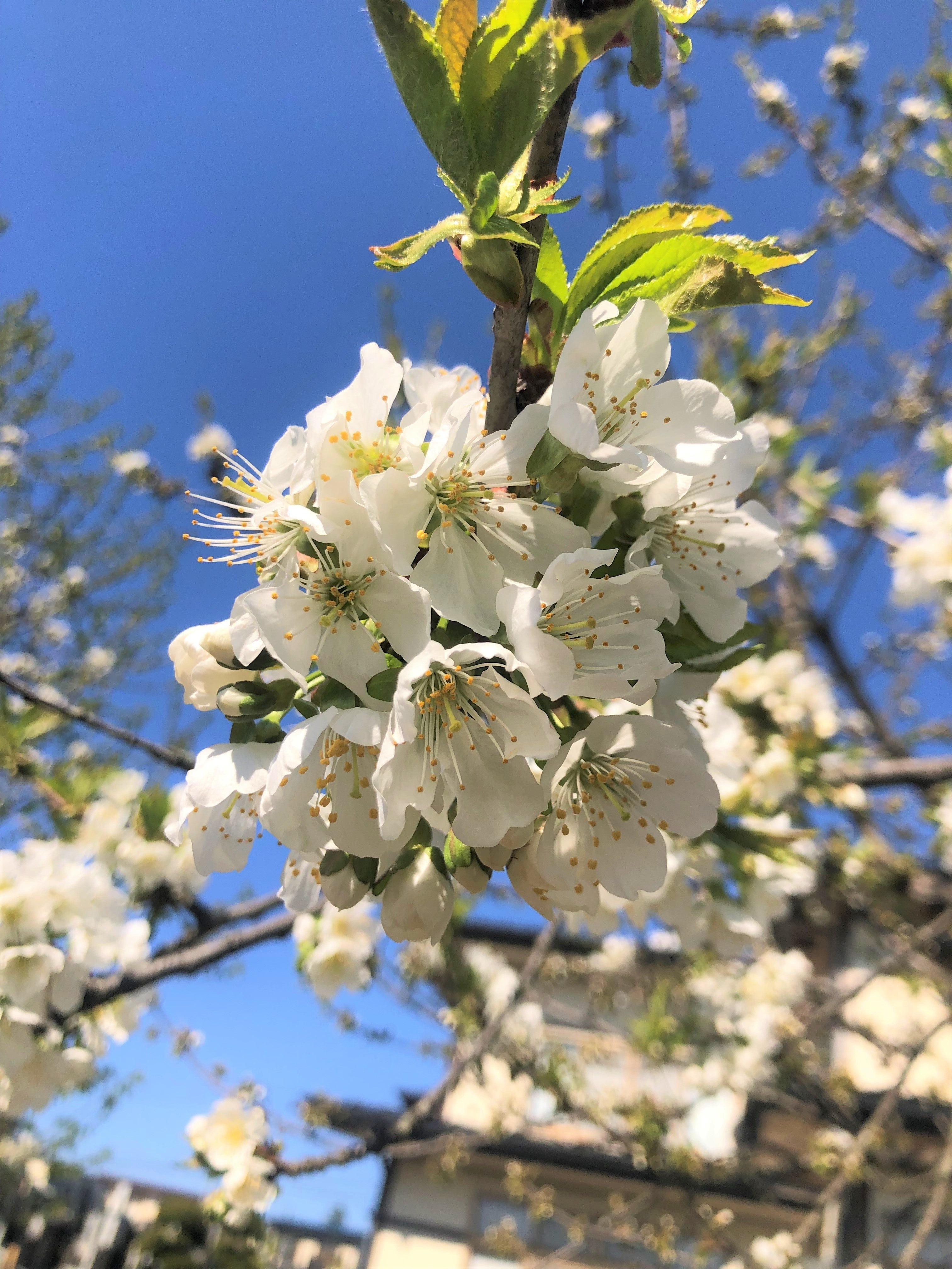 雪解けを経て、春には大きな白い花が咲き誇ります。花が咲いた瞬間からさくらんぼの花の香りに魅せられて蜜蜂達が蜜を集めます。この時さくらんぼ栽培では欠かせない受粉が行われます。受粉が十分に行われないとさくらんぼは実を生らせる事が出来ません。それほど重要な作業を蜜蜂達は頑張って行ってくれます。