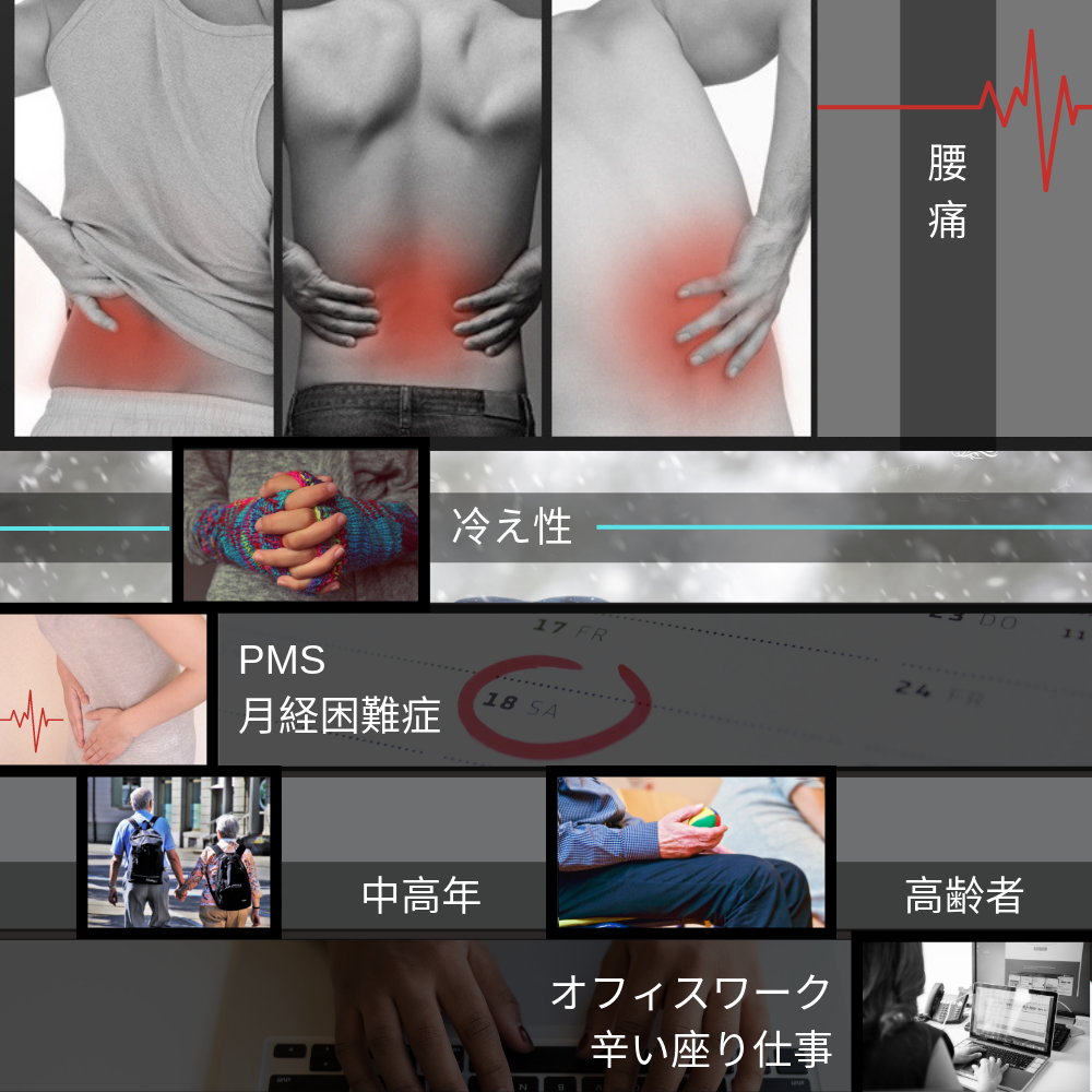 慢性的なだるさや疲労感/頭痛/不眠/腹痛・消化不良/便秘・下痢/食欲不振/肩こり/腰痛/むくみ/こむら返りetc...