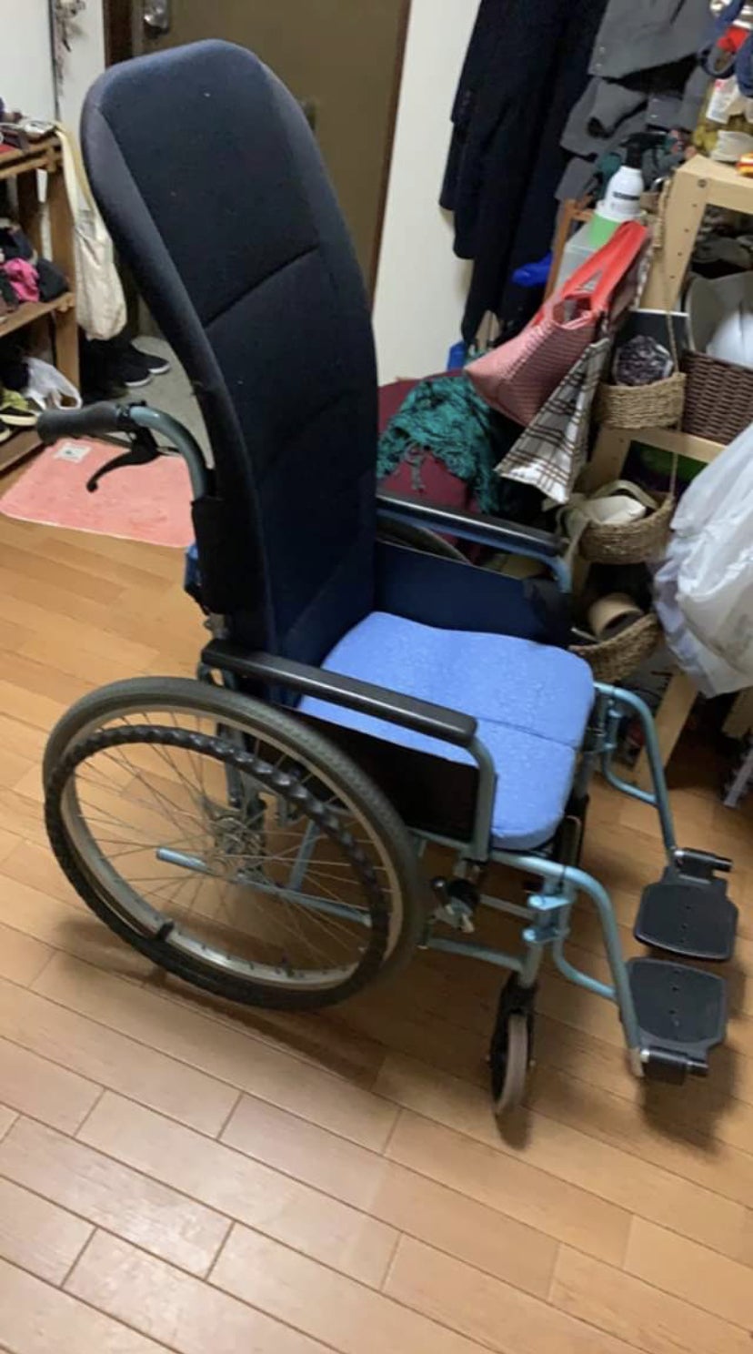 現在は廃棄寸前の手動車いすをご好意で貸していただき、生活をしていますが、身体に合わせたものではない為、身体に負担がかかったり、誰かに押してもらわなければ前に進むこともできません。