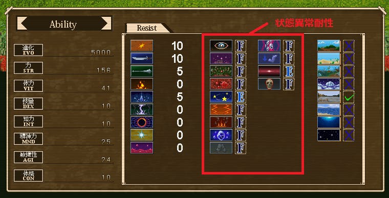 これは現在のキャラクターの状態異常に対する耐性を示しています。