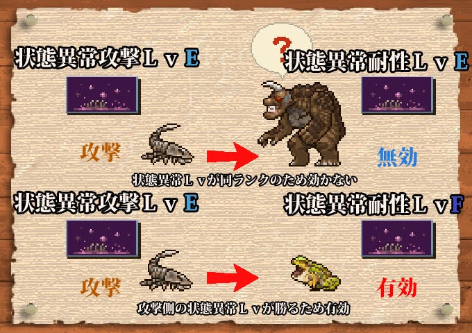 相手の状態異常攻撃のランクと同等、もしくは上回ればその状態異常攻撃は無効となります。