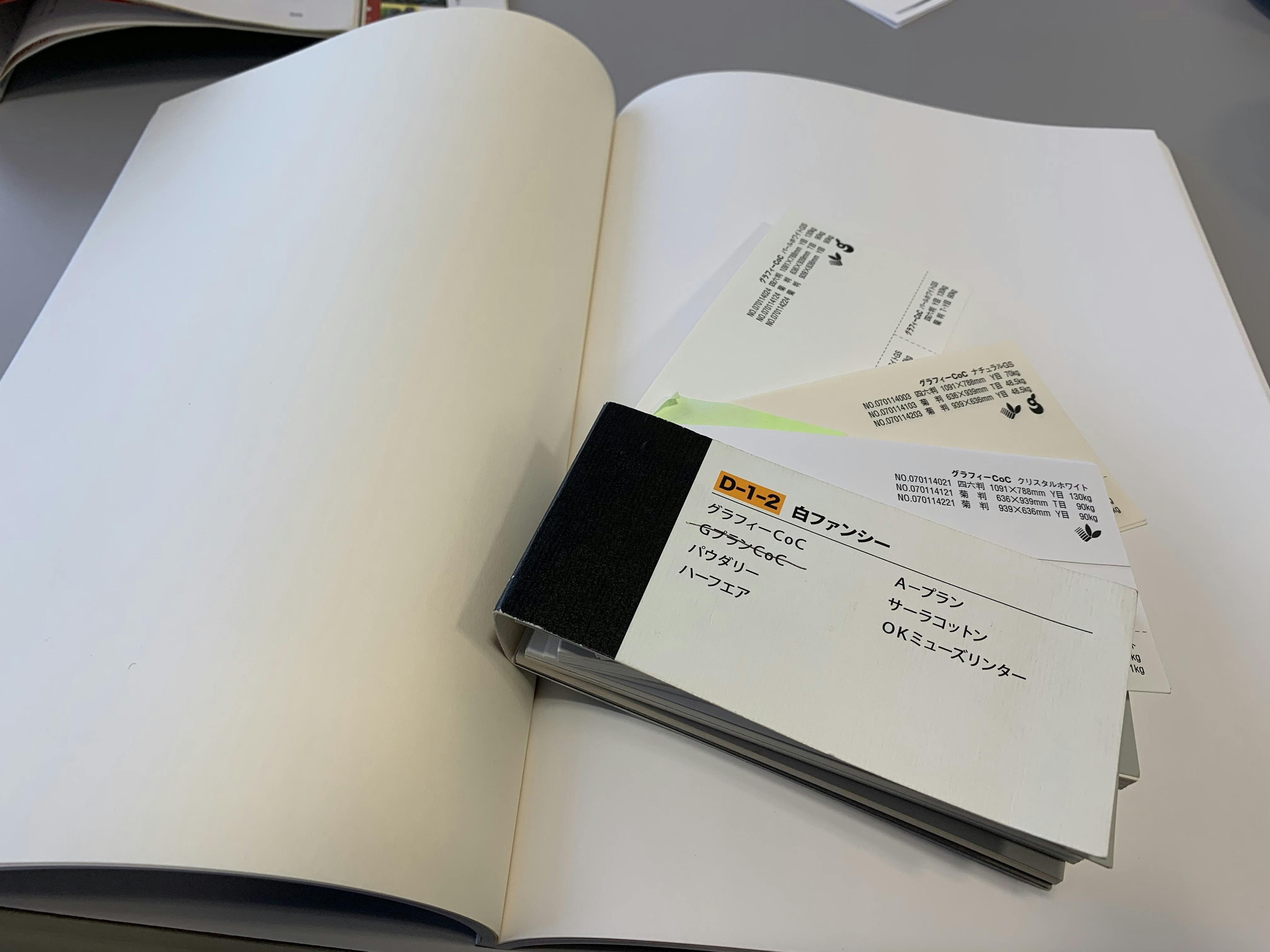 金曜日、印刷用紙を綴じたA4変形120ページの掴み本をチェックしに印刷会社さんへ。他のローカル誌なども参考にしながら手触りのよい紙をお願いし引く手数多で希少なものを確保して頂いてます。読みものページは多少ザラ付きのある紙質で、色味をやや黄色っぽいナチュラルからアイボリー調のパールホワイトに替えて頂きました。綴じ方は通常の無線綴じではなく、ページの開きが大きいPUR加工に。 :)