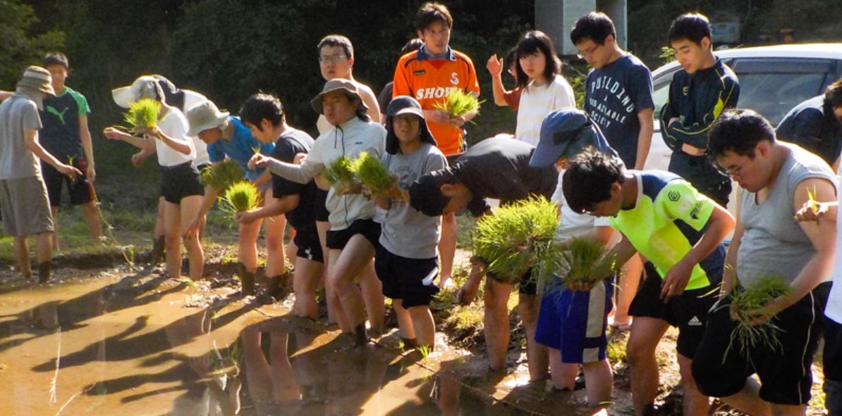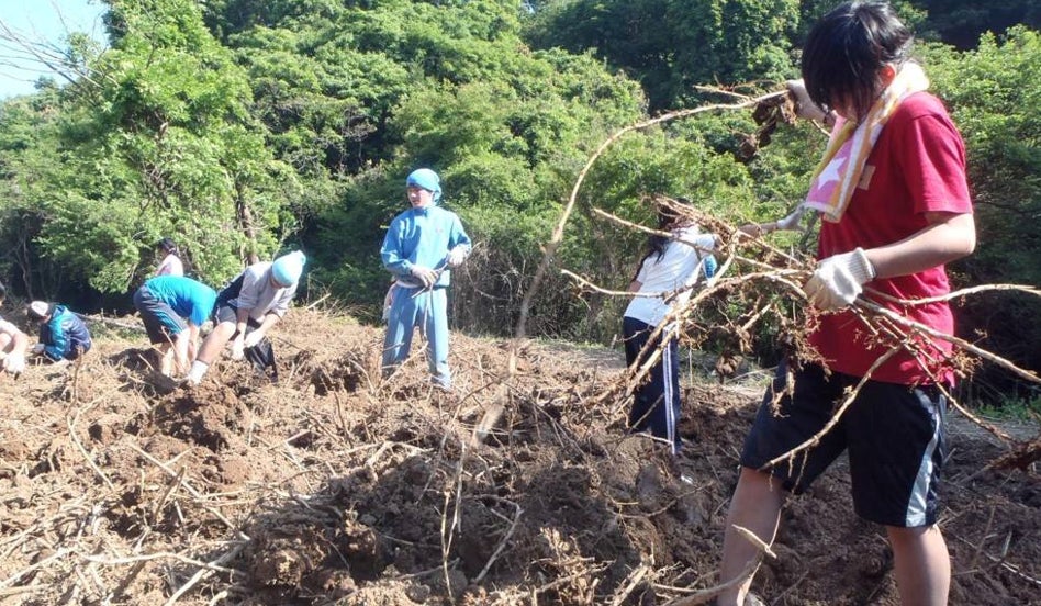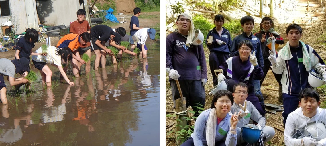 畑と田んぼを作るために重機などを使って土を掘り返しました。当時作業を行った先輩は「竹の根っこが大変だった」「この時期の目的達成までに一週間かかった」と話しています。また、この年はじめて地域の人と一緒に夏祭りをしました。