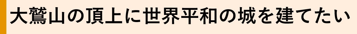 私たちは「諦めない気持ち」と「強い絆」でこのプロジェクトに臨み、「信頼できる仲間たち」と力を合わせ、世界平和の城を絶対に築城します!どうか、皆様のご支援をよろしくお願い致します!