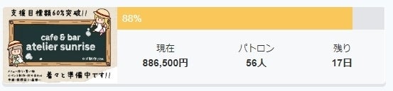 つい先日ですが支援額が目標額の80%を突破しました