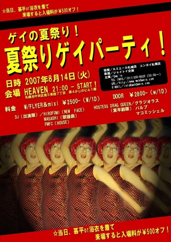 テルマエさんも少し触れていましたが、札幌のゲイナイトでDJをしています。で、何年からゲイナイトでDJしてたかなー思ってパソコンの画像を探っていたら出てきたのが上の画像。パレードと関係ない画像貼るのどうなの?って思いましたが、たまにはいいですよね。貴重な資料としてご覧ください笑。NEW FACEって書かれてます。13年前。。。時の流れは恐ろしいわ。